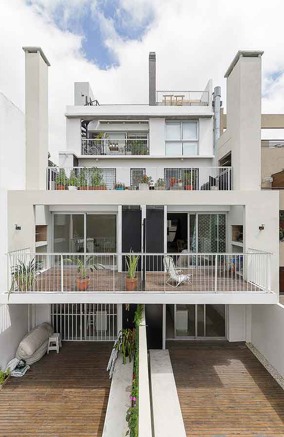 Edificio de 4 pisos con unidades de 1, 2 y 3 ambientes.