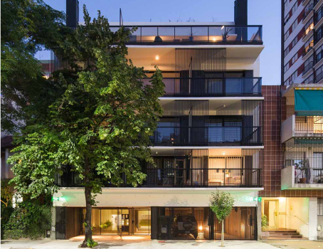 Edificio de 4 pisos con unidades de 1, 2, 3 y 4 ambientes.